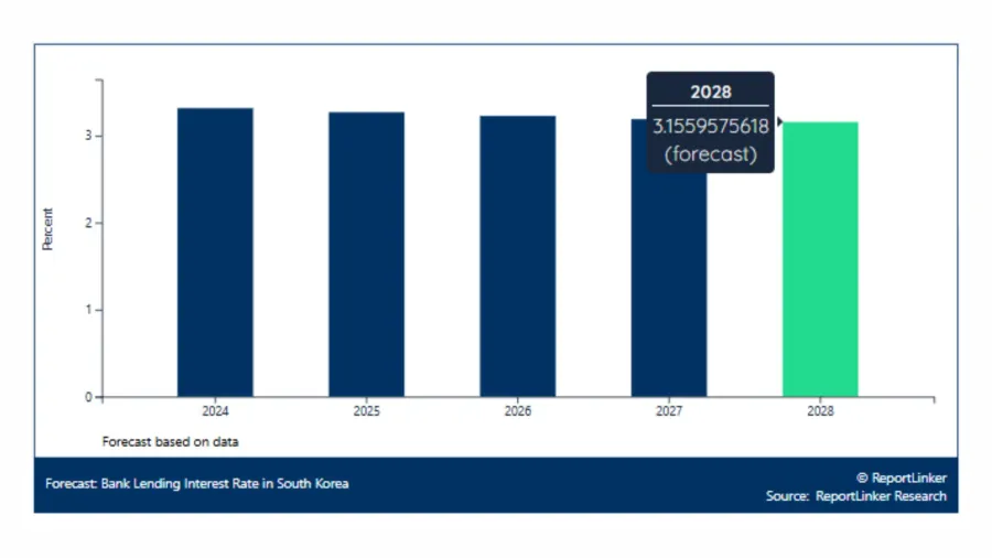 South Korea’s bank lending interest rate is slated to slow down to 3.16% by 2028, according to ReportLinker Research.